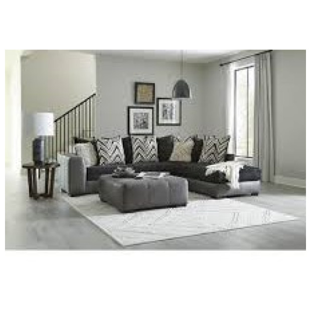 This sectional is featured in a beautiful zaftig ebony fabric finish for an elegant and classy look. With its classic look and durable construction, this piece complements various styles and offers long-lasting beauty.
