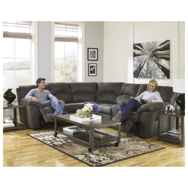 With plush cushions and wraparound pillow top arms, this sectional takes comfort to a whole new level. Faux vintage leather requires minimal care, making this relaxation station ideal in homes with children and pets. Reclining feature engages with the pull of a tab, putting pleasure at your fingertips.