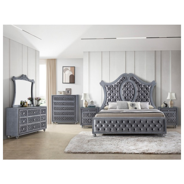 Cameo Grey Ornate Queen Bed,Dr,Mr,Ns