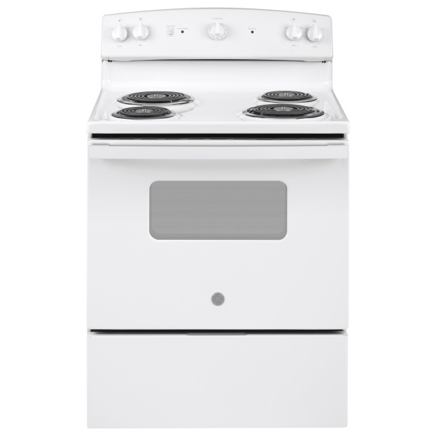 The GE JBS160DM electric range brings reliable cooking power and timeless simplicity to your kitchen. Whether you're baking, boiling, or broiling, this 30" range is designed to handle your daily cooking needs with ease. Features 4 coil burners and 5cf oven capacity.