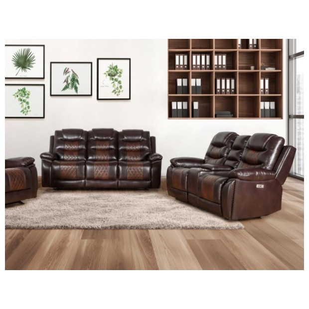 Nikko Reclining Sofa/Love Two-Tone Brown,Drop Tbl