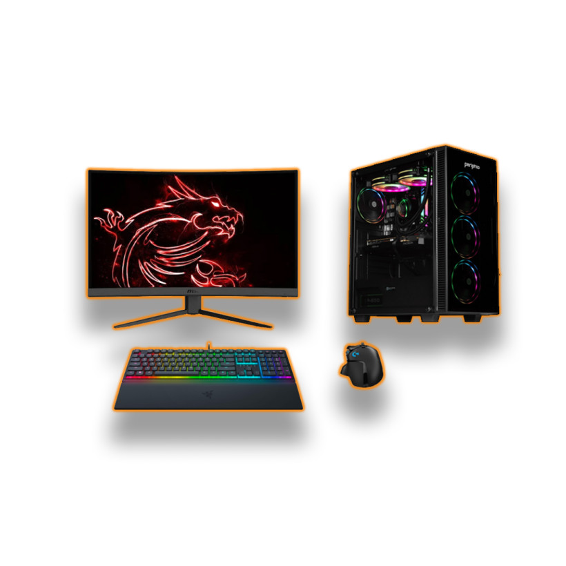Gaming desktop featuring Ryzen 5, 16gb ram, Vega 7 graphics, 1TB SSD, 32" Curved LED monitor